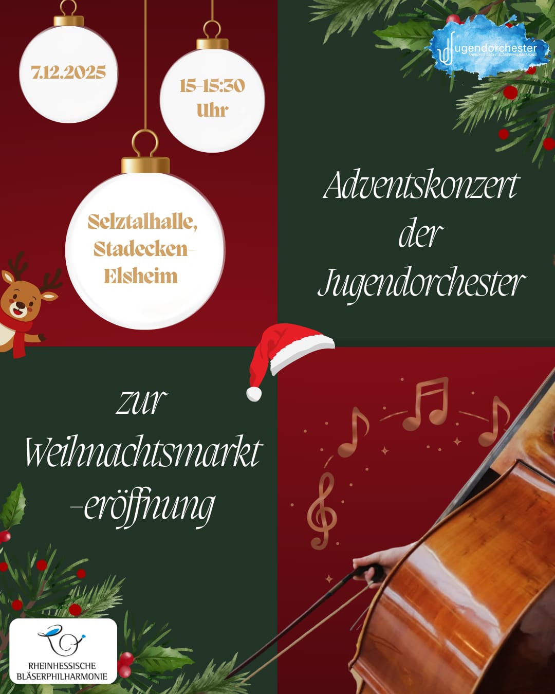 In der Selztalhalle stimmen die beiden Jugendorchester mit einem kurzen Konzert auf den Weihnachtsmarkt ein.